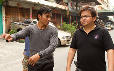 ตอนแรกที่คุยกับพี่ปรัชถึงการถ่ายทำฉากนี้เป็นฉากใหญ่มากๆ แค่ทีมงานนักแสดงเฉพาะวันนี้ก็เกินพันคนแล้ว ให้ทีมงานติดต่อถ่ายทำโดยปิดถนนเลย แล้วก็จะมีเฮลิคอปเตอร์ช็อตที่เป็นการถ่ายภาพจากมุมสูง มุมกว้างให้เห็นบรรยากาศทั้งหมด ในส่วนของ Location มุมกล้อง ภาพรวมทุกอย่างผ่านการประชุมมาหมดแล้ว แต่ก่อนหน้านี้ที่ยังไม่ได้ถ่ายทำเพราะเราคำนึงถึงความปลอดภัยบนท้องฟ้า ท้องถนนเป็นหลัก มีการตรวจเช็คสภาพอากาศ ถ้าสภาพอากาศไม่เอื้ออำนวยก็ไม่สามารถ่ายทำได้ พี่ปรัชไม่ให้ถ่ายเลยเพราะว่าต้องคำนึงถึงความปลอดภัยของทุกคนเป็นหลัก ก็เลยต้องมีการเลื่อนคิว จนมาถึงวันนี้ที่ทุกอย่างพร้อมแล้ว ก็เลยได้ถ่ายทำสมใจ และทุกอย่างก็ผ่านพ้นไปได้ด้วยดี แล้วยิ่งพอได้เห็นภาพที่ถ่ายจากเฮลิคอปเตอร์ช็อตแล้วรู้สึกว่าเป็นภาพที่ค่อนข้างแปลกตา เป็นภาพใหม่ๆ ที่อลังการเหมือนกัน ถือว่าเป็นหนังไทยเรื่องแรกที่เราจะได้เห็นภาพที่น่าตื่นตาแบบนี้และเป็น 3 มิติด้วยต้องชื่นชมในมุมมองของพี่ปรัชญา ปิ่นแก้วผู้ กำกับ และทีมงานทุกคนด้วย ในส่วนของผมเอง ก็มีโอกาสได้ขับมอเตอร์ไซค์แว๊น (หัวเราะ) ก็ยังเสียวๆ อยู่เลยครับ ถ้าปกติในสมัยโบราณจะขี่ม้า แต่เรื่องนี้ขับมอเตอร์ไซค์ และเป็นหนังเรื่องแรกที่ผมขับมอเตอร์ไซค์ถือว่าเป็นฮีโร่แบบใหม่ยุคปัจจุบันที่ขี่มอเตอร์ไซค์ (หัวเราะ) แต่ว่าจริงๆ แล้วผมก็ฝึกมานานนะครับ ฝึกมาตั้งแต่เรียนมัธยม ก็ถือว่าได้เข้าฉาก ได้โชว์ความสามารถของเราในการแว๊นมอเตอร์ไซค์สักครั้งหนึ่ง ในฉากที่เราพยายามหนีเอาตัวรอดแต่จะเป็นอย่างไรก็คงต้องรอติดตามในต้มยำกุ้ง 2”