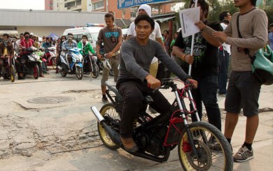 เป็นอีกหนึ่งภาพอลังการที่ควรต้องถูกบันทึกลงในหน้าประวัติศาสตร์ในการสร้างภาพยนตร์เลยทีเดียวสำหรับ 1 ในฉากใหญ่ ที่ต้องมีการปิดถนนพระราม 3 เพื่อถ่ายทำฉากเหล่าแก๊งมอเตอร์ไซค์แว๊นกว่า 300 คันขับไล่ล่าเอาชีวิตพระเอกจาพนม ยีรัมย์ใน “ต้มยำกุ้ง 2-3D” ภาพยนตร์ REAL ACTION MARTIAL ARTS 3 มิติ เรื่องแรกของโลก และถือได้ว่าเป็นภาพแรกอย่างเป็นทางการที่ทางค่ายสหมงคลฟิล์มฯ เปิดเผยออกมาให้แฟนๆ ได้เห็น หลังจากมีเสียงเรียกร้อง และพูดถึงโปรเจ็คต์ภาคต่อของต้มยำกุ้งที่คนทั้งโลกรอคอย ว่าอยากเห็นภาพจากหนังกันออกมามากเหลือเกิน